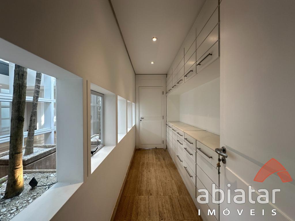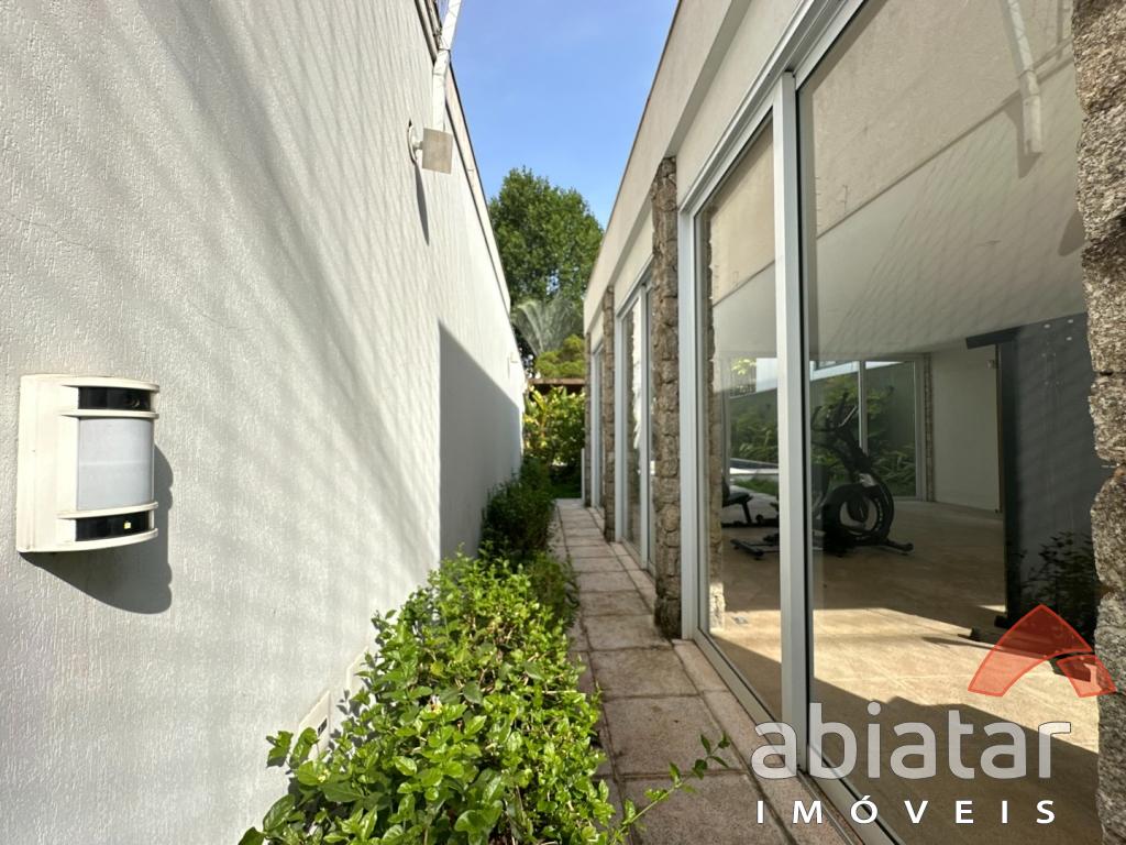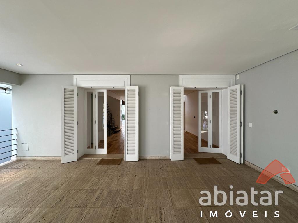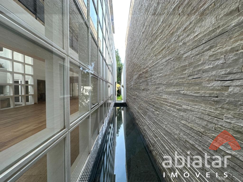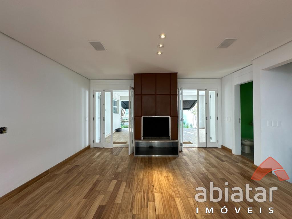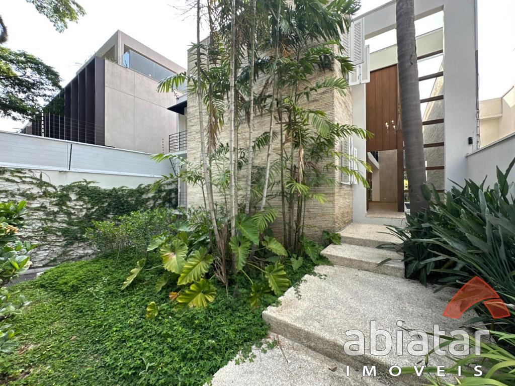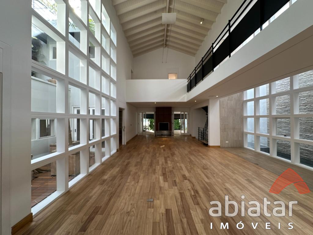 São 4 suítes amplas, sendo a master com dois closets, dois banheiros e hidromassagem. O living possui pé-direito alto, lareira e integração elegante aos espaços internos e ao jardim. Conta ainda com sala de TV, sala de almoço, copa, cozinha planejada e ambientes repletos de luz natural.
