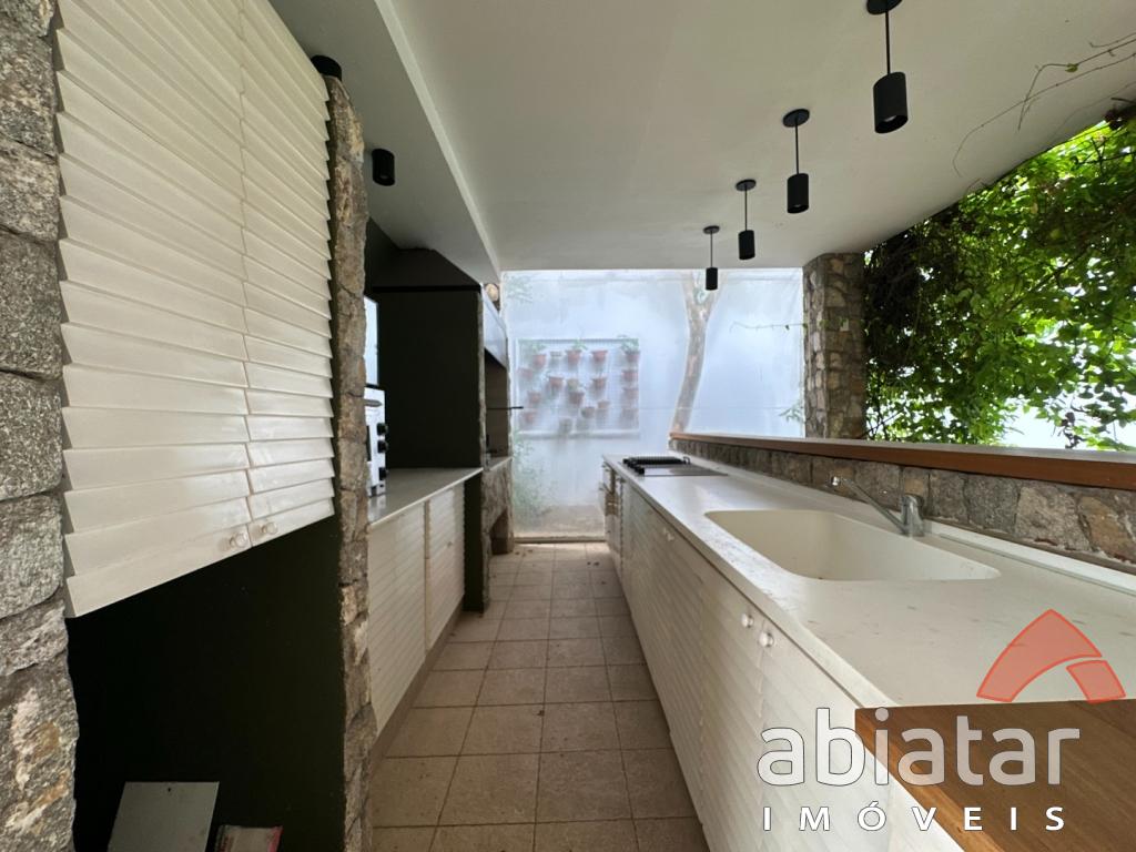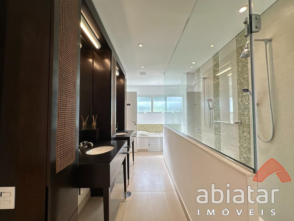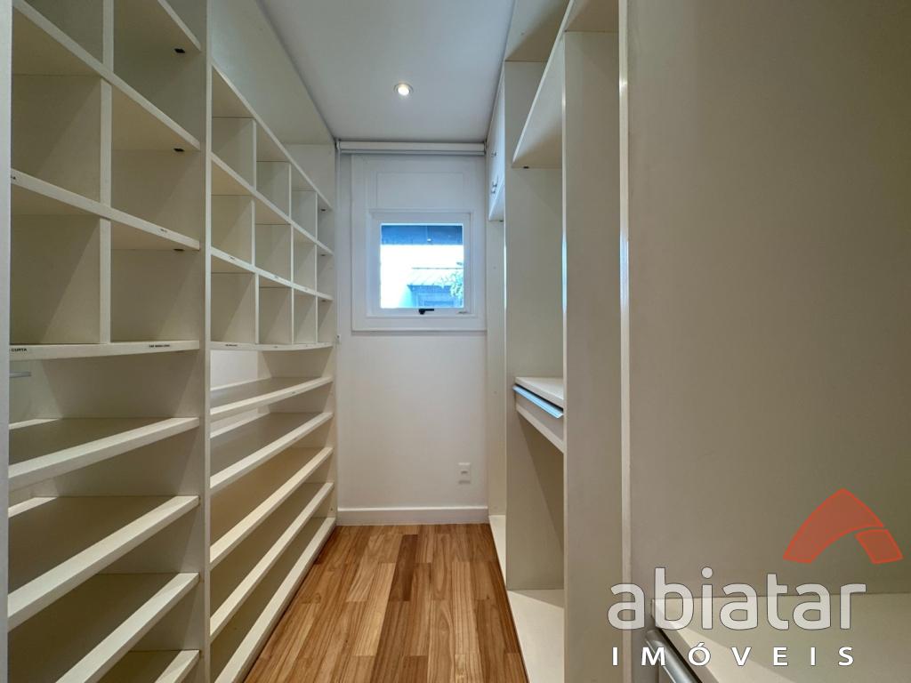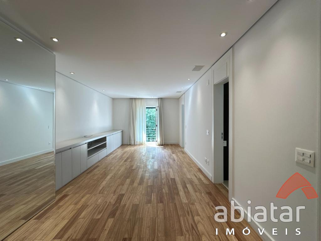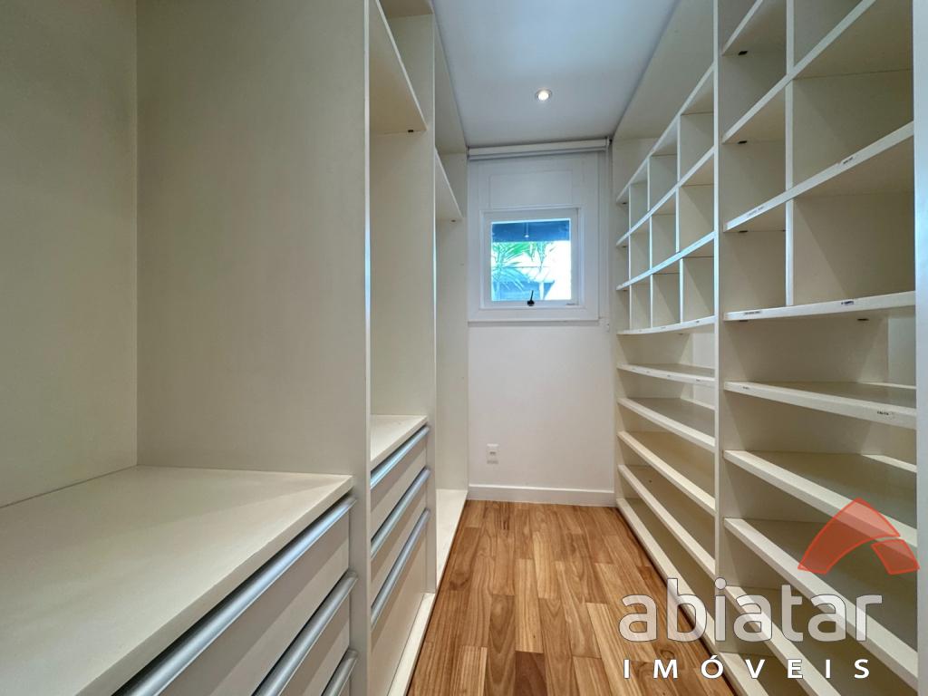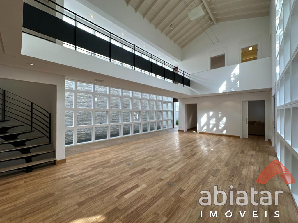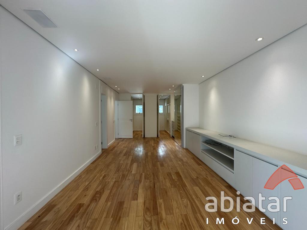 São 4 suítes amplas, sendo a master com dois closets, dois banheiros e hidromassagem. O living possui pé-direito alto, lareira e integração elegante aos espaços internos e ao jardim. Conta ainda com sala de TV, sala de almoço, copa, cozinha planejada e ambientes repletos de luz natural.