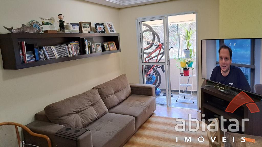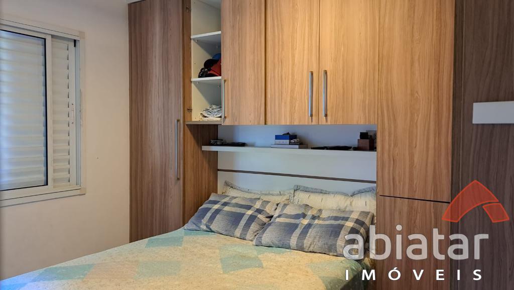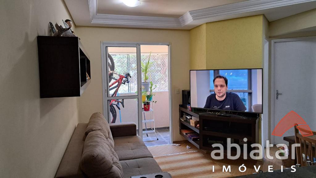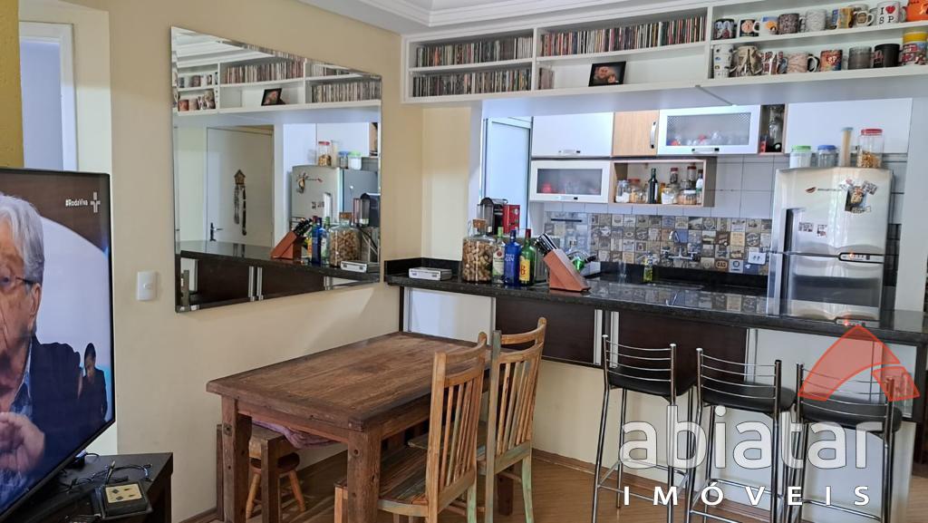 Apartamento de 47 m² com 2 dormitórios, sala para dois ambientes, cozinha e área de serviço com redes de proteção, piso laminado e 1 vaga de garagem.