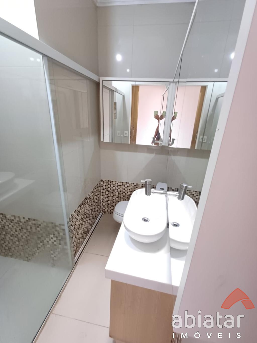 - Banheiro com armário planejado e box de vidro